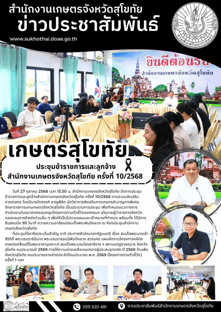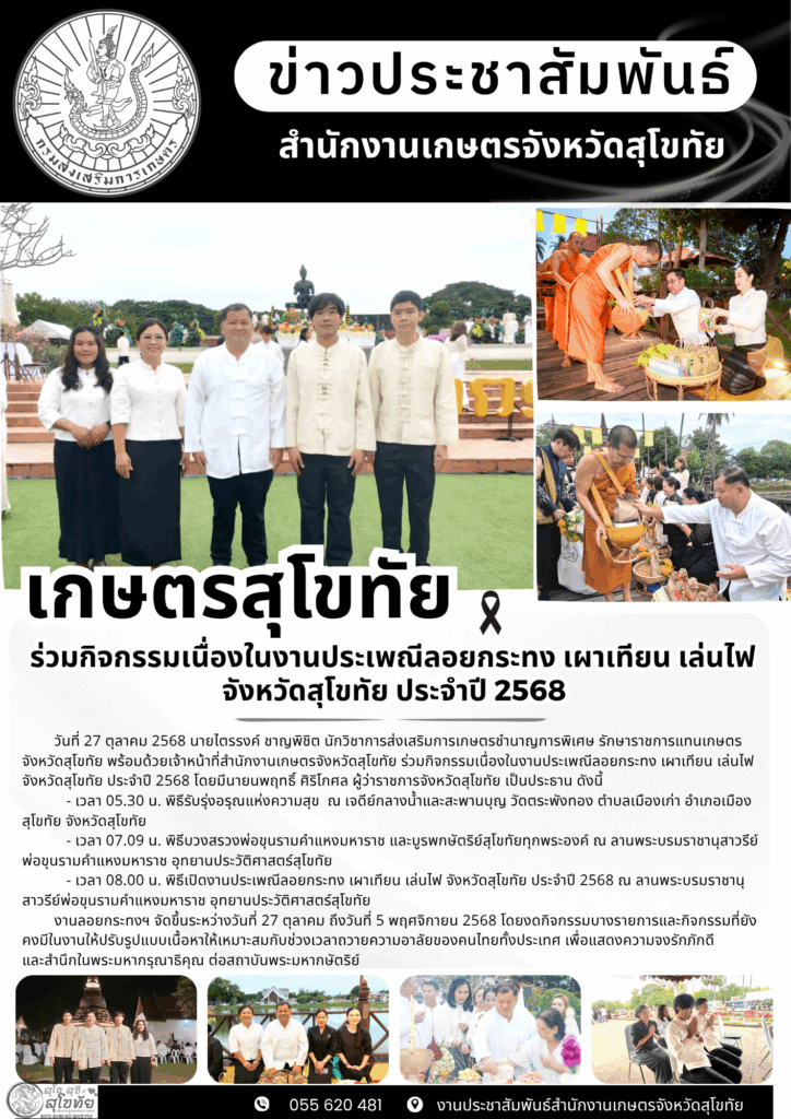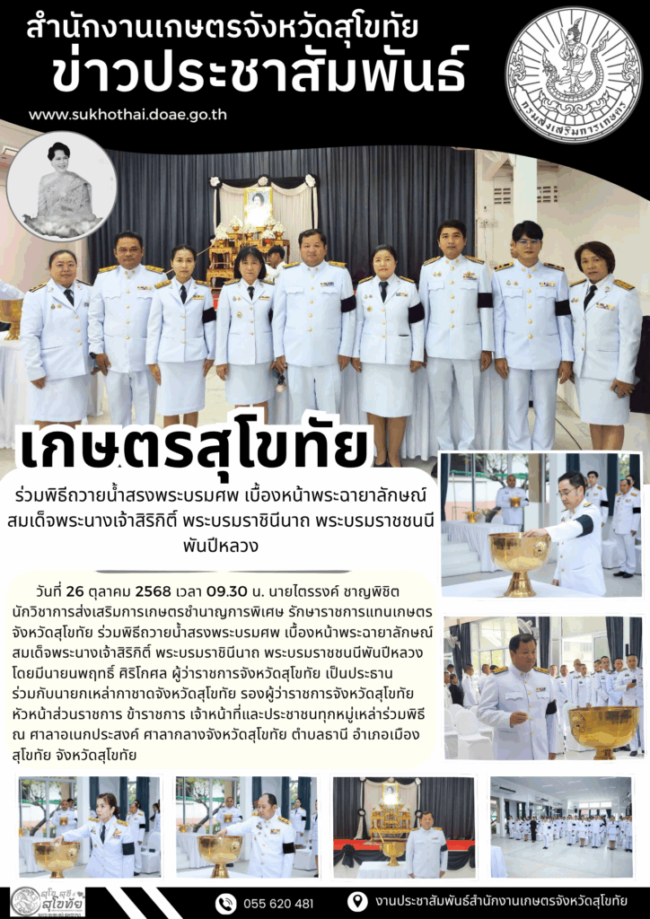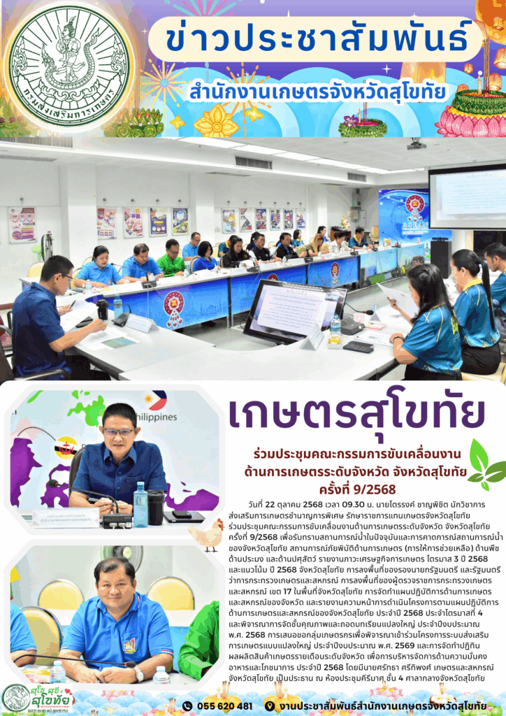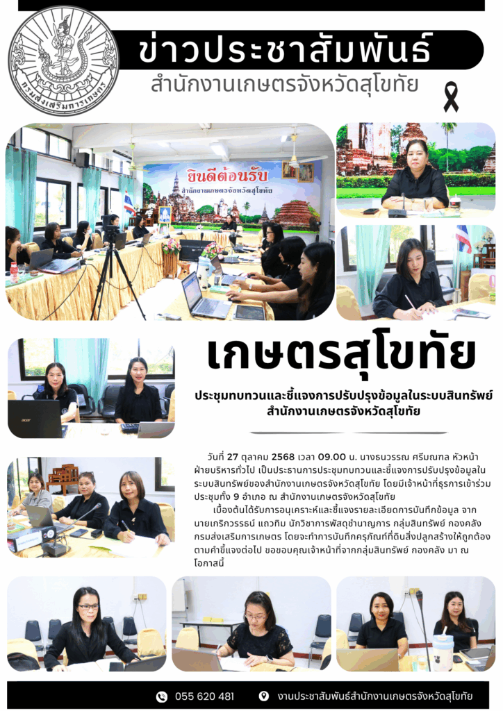 รายงานข้อมูลสำคัญของสำนักงานเกษตรจังหวัดสุโขทัย
