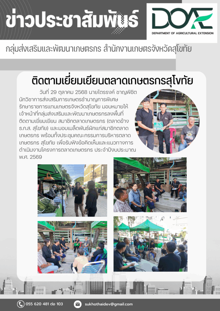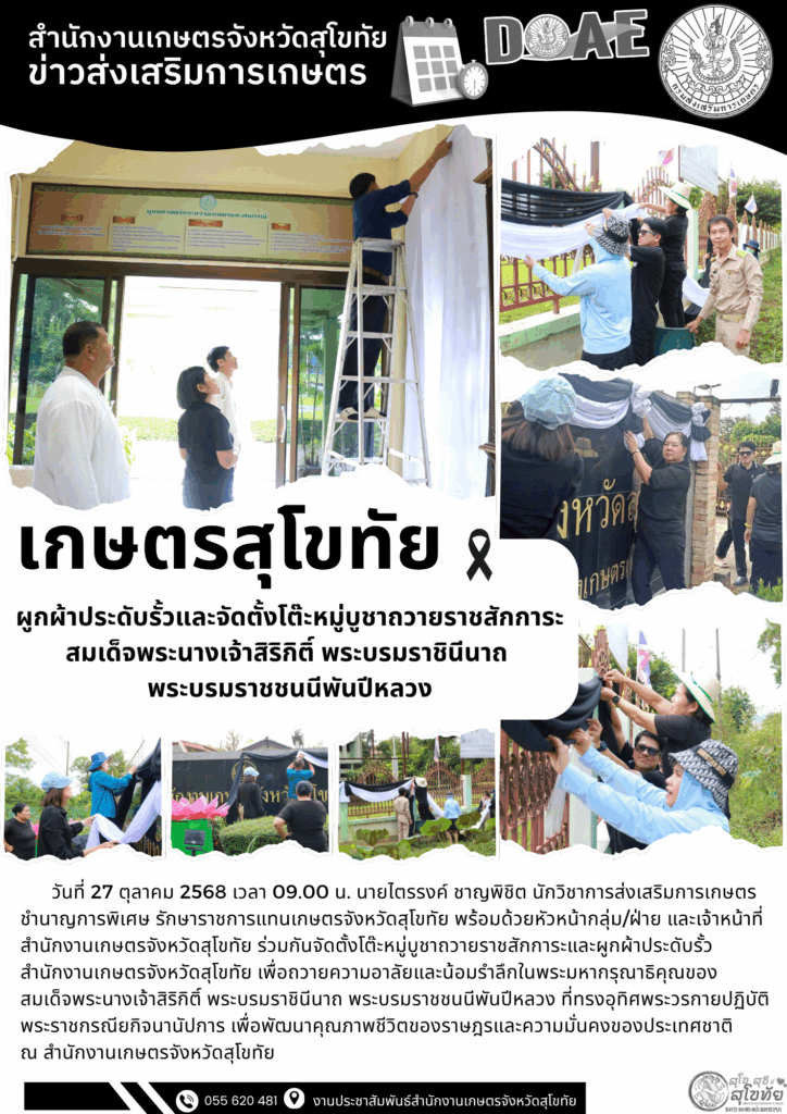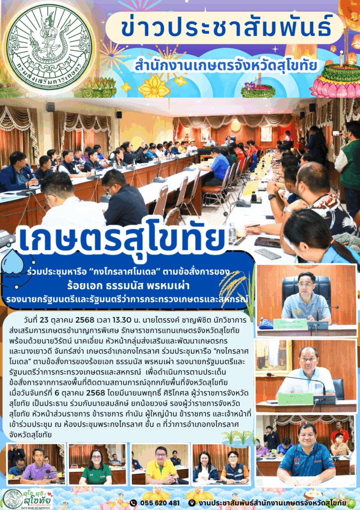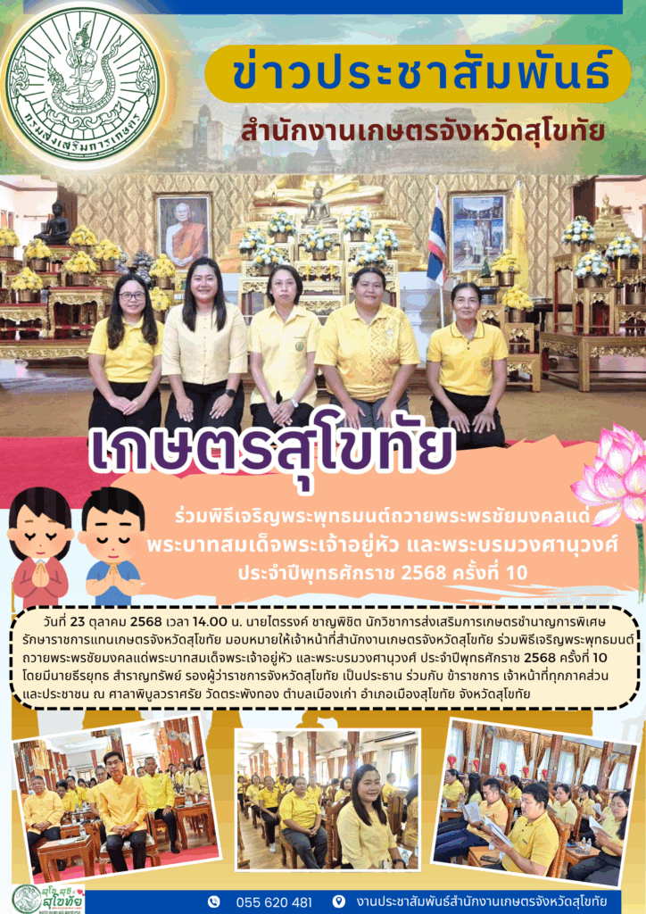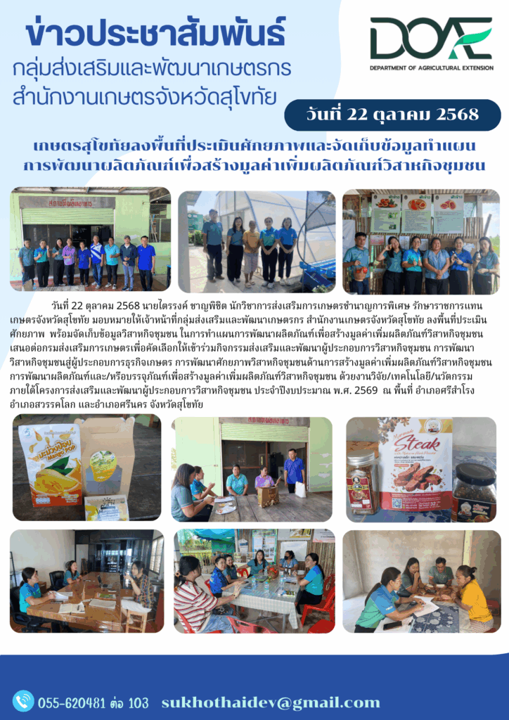 รายงานข้อมูลสำคัญของสำนักงานเกษตรจังหวัดสุโขทัย