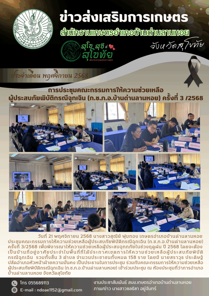 การประชุมคณะกรรมการให้ความช่วยเหลือผู้ประสบภัยพิบัติกรณีฉุกเฉิน (ก.ช.ภ.อ.บ้านด่านลานหอย) ครั้งที่ 3 /2568By bandanlanhoi / 28 พฤศจิกายน 2025