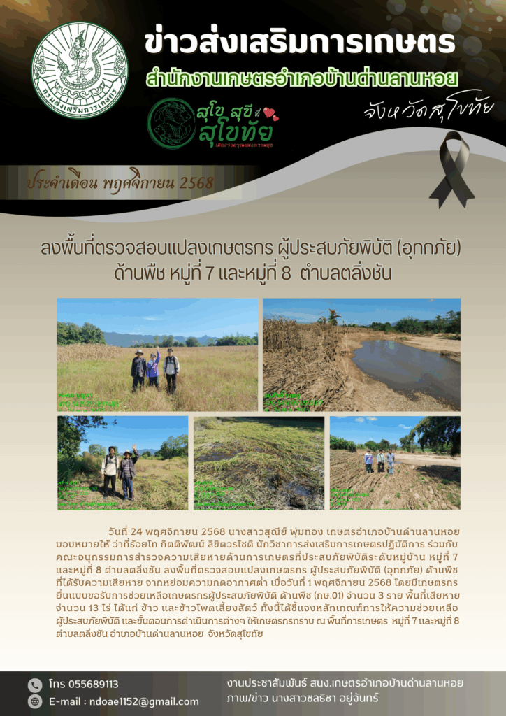 ลงพื้นที่ตรวจสอบแปลงเกษตรกร ผู้ประสบภัยพิบัติ (อุทกภัย) ตำบลตลิ่งชัน