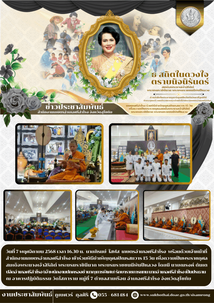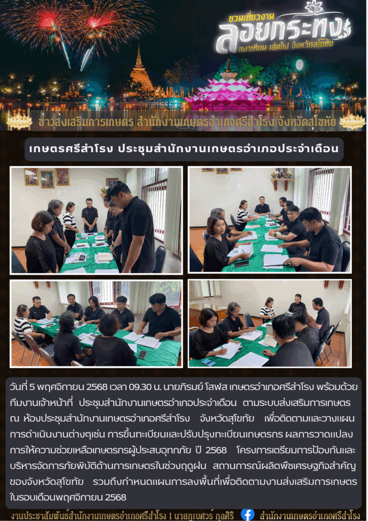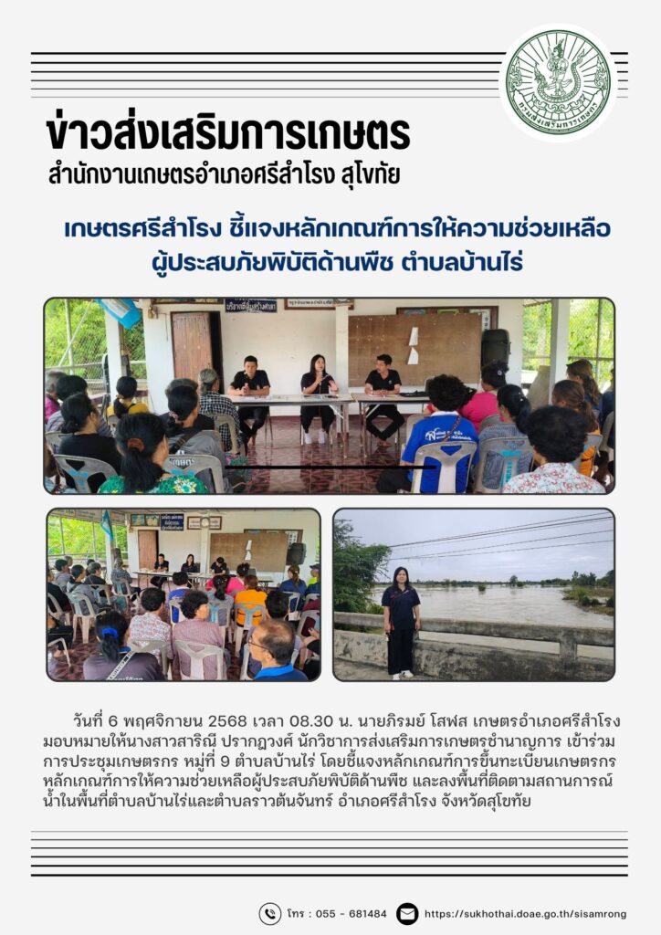 ข่าวส่งเสริมการเกษตร ข่าวเตือนการระบาดศัตรูพืชข่าวประชาสัมพันธ์ เตือนเฝ้าระวังศัตรูพืชระหว่างวันที่ 13 – 26 พฤศจิกายน 2568อ่านต่อแมลงบั่วในนาข้าวอ่านต่อ ทางเลือกจัดการเศษวัสดุทางการเกษตรอ่านต่อ สมัครรับข่าวสาร แบบสำรวจความพึงพอใจเว็บไซต์ ข่าวรับสมัครงาน ::: สื่อประชาสัมพันธ์ ::: Click Click Click : สำหรับเจ้าหน้าที่ : ระบบทะเบียนเกษตรกร ระบบข้อมูลภัยธรรมชาติ ระบบวิสาหกิจชุมชน ระบบ T and V ระบบวาดแปลง Geoplot ระบบสารสนเทศเกษตรกรปราดเปรื่อง ระบบลงทะเบียนอาสาสมัครเกษตร ระบบสารสนเทศเกษตรแปลงใหญ่ ระบบ HRCS สมาชิกสหกรณ์ออมทรัพย์ สนง.เกษตรจังหวัดสุโขทัย ระบบทะเบียนประวัติอิเล็กทรอนิกส์ (SEIS) ระบบ Mail Box กรมส่งเสริมการเกษตร ระบบค้นหาตรวจสอบที่ดิน (Online) ระบบ E-learning กรมส่งเสริมการเกษตร ระบบ E-learning ข้าราชการพลเรือน (กพ) ระบบ GIS-AGRO 4.0 ระบบฐานข้อมูลเกษตรกรผู้เข้าร่วมการส่งเสริมการเกษตร ระบบใบรับรองเงินเดือนข้าราชการ ระบบสมาชิกสหกรณ์ออมทรัพย์ กรมส่งเสริมการเกษตร :: ข้อมูลติดต่อสำนักงาน :: สำนักงานเกษตรอำเภอศรีสำโรงหมู่ที่ 5 ตำบลคลองตาลอำเภอศรีสำโรง จังหวัดสุโขทัยรหัสไปรษณีย์ 64120เบอร์โทรศัพท์ : 055 – 681484 ธรรมาภิบาลองค์กร ลิขสิทธิ์สำนักงานเกษตรอำเภอศรีสำโรง © 2025