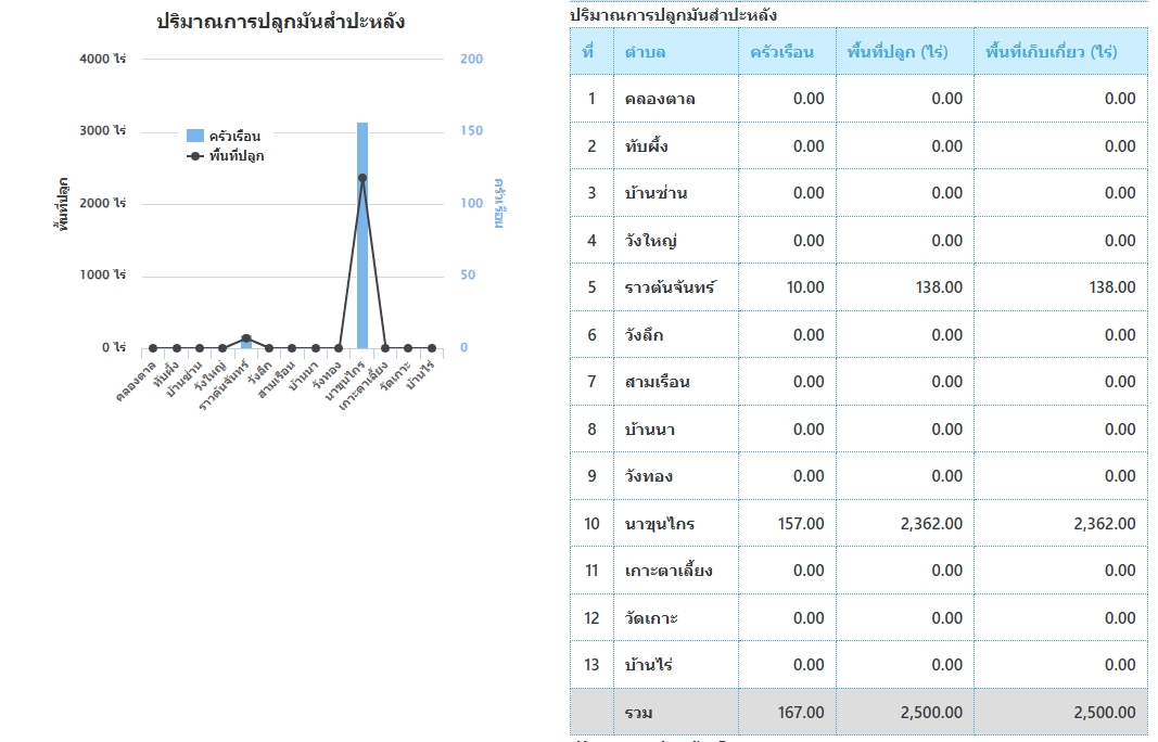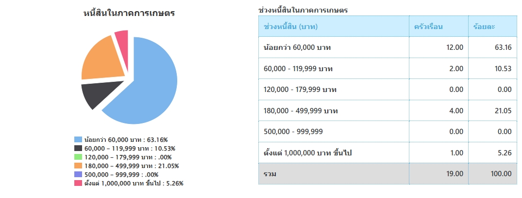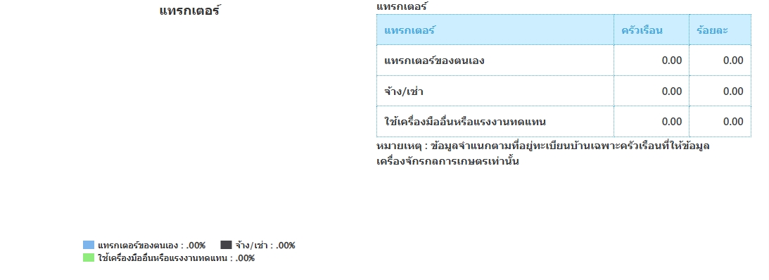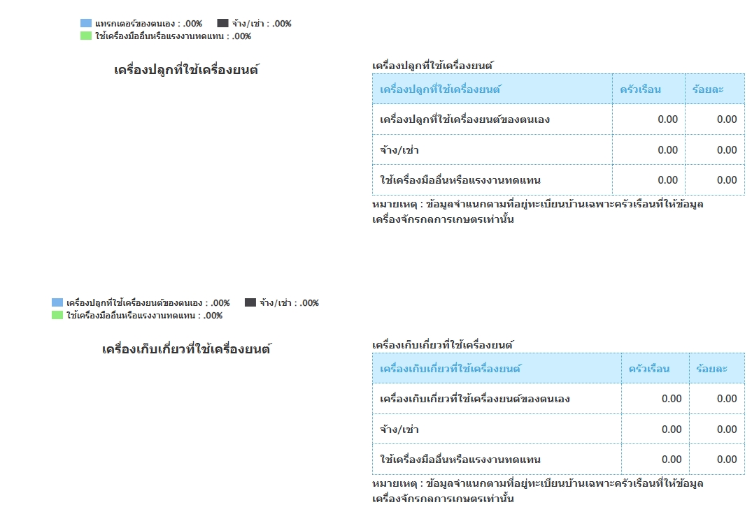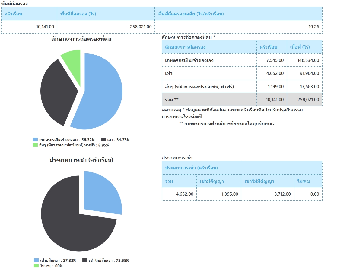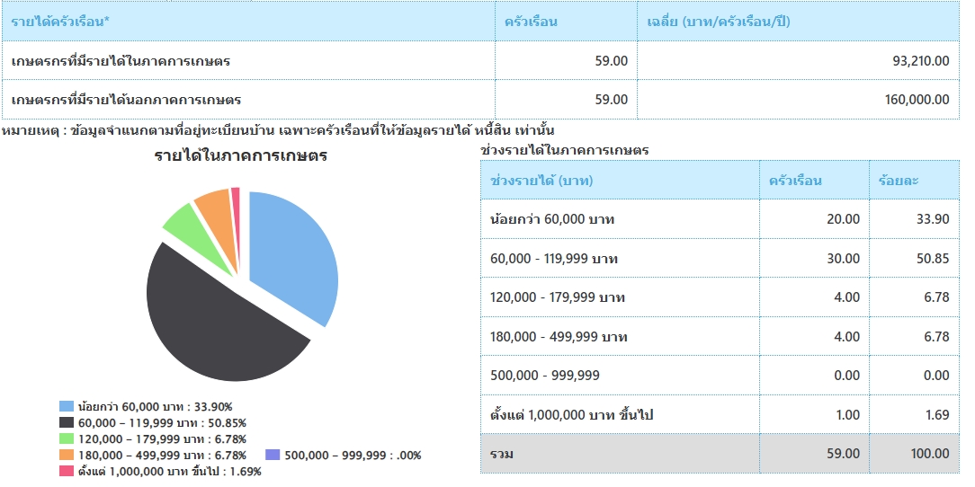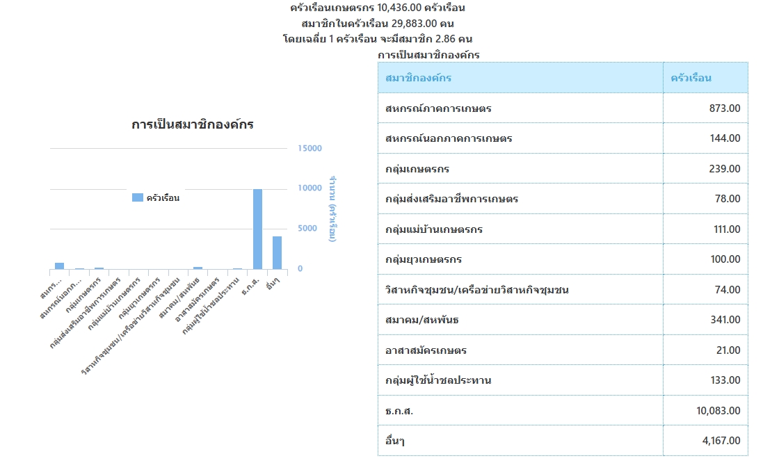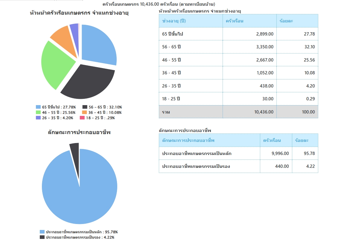 ข้อมูลตัดยอด ณ วันที่ 30 เมษายน 2568 1. ข้อมูลพื้นฐานครัวเรือน2. การเป็นสมาชิกองค์กร3. การถือครองที่ดินเพื่อการเกษตร4. การประกอบกิจกรรมทางการเกษตร5. รายได้/หนี้สินครัวเรือน6. เครื่องจักรกลการเกษตร7. แหล่งน้ำ ขึ้นไปด้านบน ขึ้นไปด้านบน ขึ้นไปด้านบน ขึ้นไปด้านบน ขึ้นไปด้านบน ขึ้นไปด้านบน