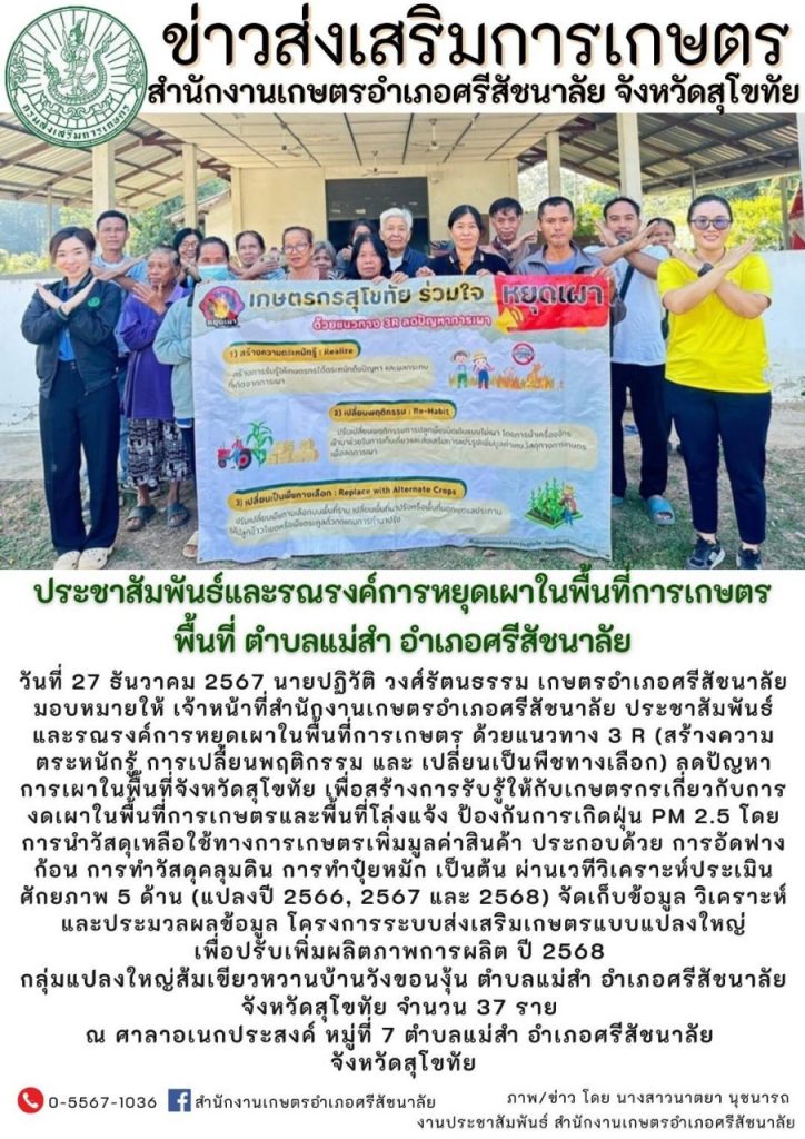 “เกษตรศรีสัชฯ ร่วมประชาสัมพันธ์เปิดตัวแหล่งท่องเที่ยวเชิงเกษตรด้านหม่อนไหม อำเภอศรีสัชนาลัย” 26 กุมภาพันธ์ 2025