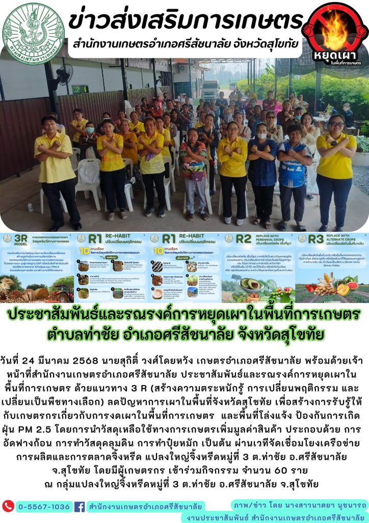 “ประชาสัมพันธ์และรณรงค์การหนุดเผาในพื้นที่การเกษตร ตำบลศรีสัชนาลัย”