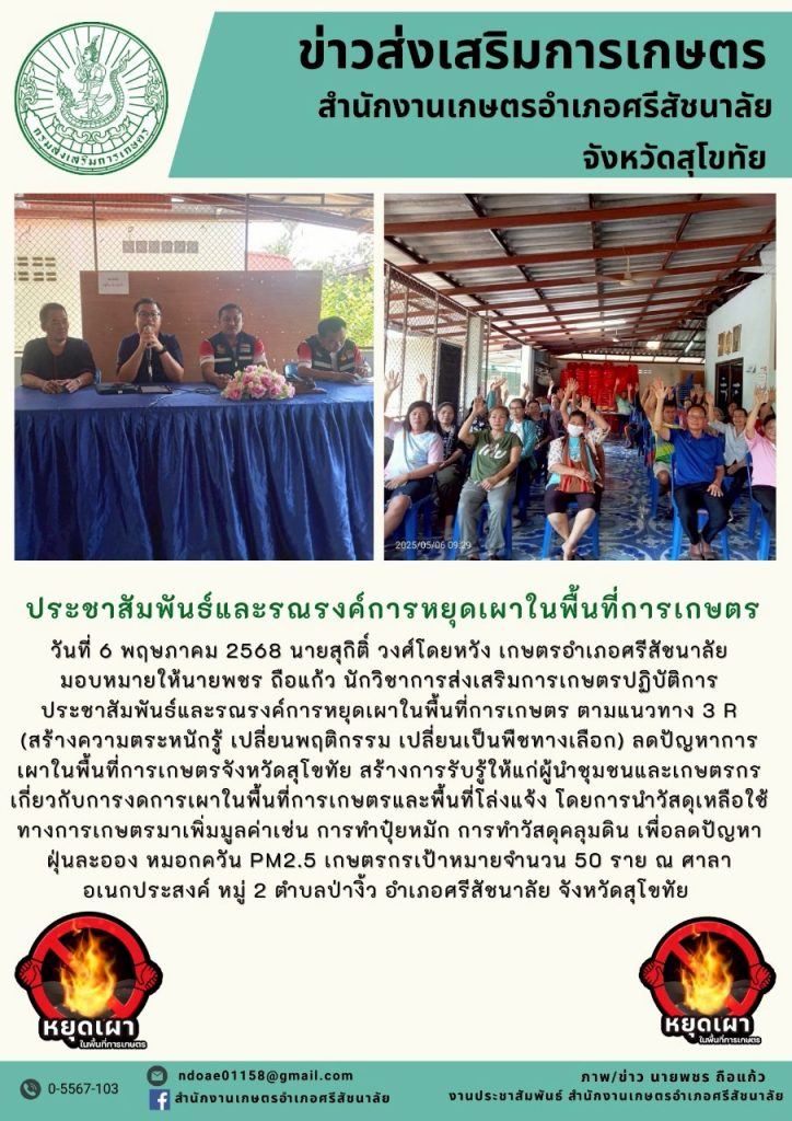 “เกษตรศรีสัชฯ ประชาสัมพันธ์รณรงค์การหยุดเผาในพื้นที่การเกษตร”