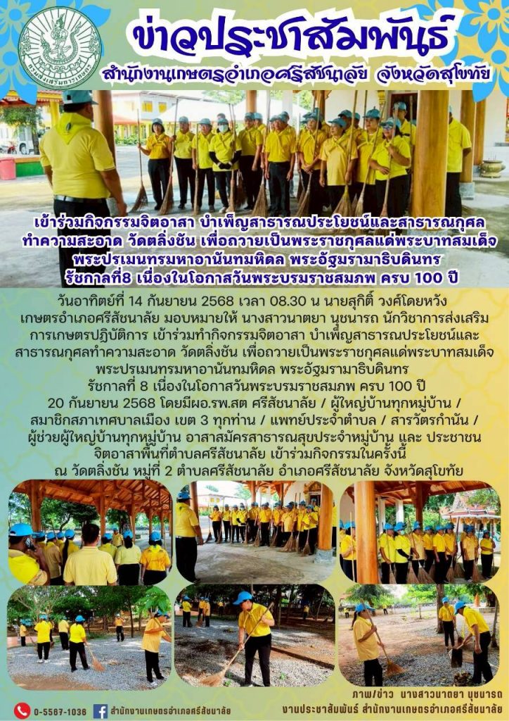 “เข้าร่วมกิจกรรมจิตอาสา บำเพ็ญสาธารณประโยชน์และสาธารณกุศลทำความสะอาด วัดตลิ่งชั่น เพื่อถวายเป็นพระราชกุศลแด่พระบาทสมเด็จพระปรเมนทรมหาอานันทมหิดล พระอัฐมรามาธิบดินทร รัชกาลที่ 8 เนื่องในโอกาสวันพระบรมราชสมภพ ครบ 100 ปี” by admin · 24 กันยายน 2025