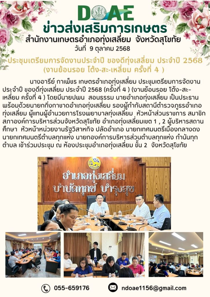 ประชุมเตรียมการจัดงานประจำปี ของดีทุ่งเสลี่ยม ประจำปี 2568 (งานย้อนรอย โต้ง-สะ-เหลี่ยม ครั้งที่ 4 )By thungsaliam / 20 ตุลาคม 2025